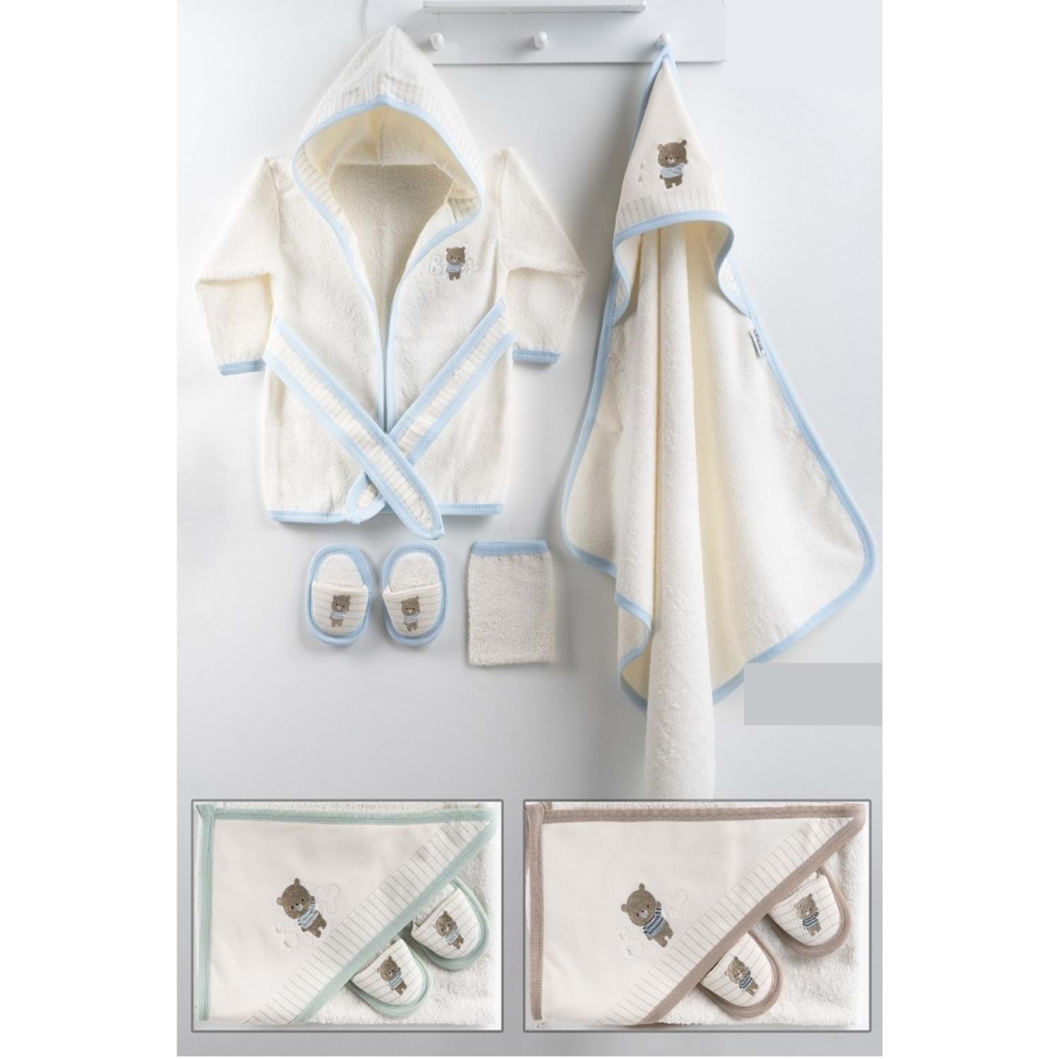 Gaye Bebe Panda Nakışlı Erkek Bornoz Seti -8802645 - MAVİ