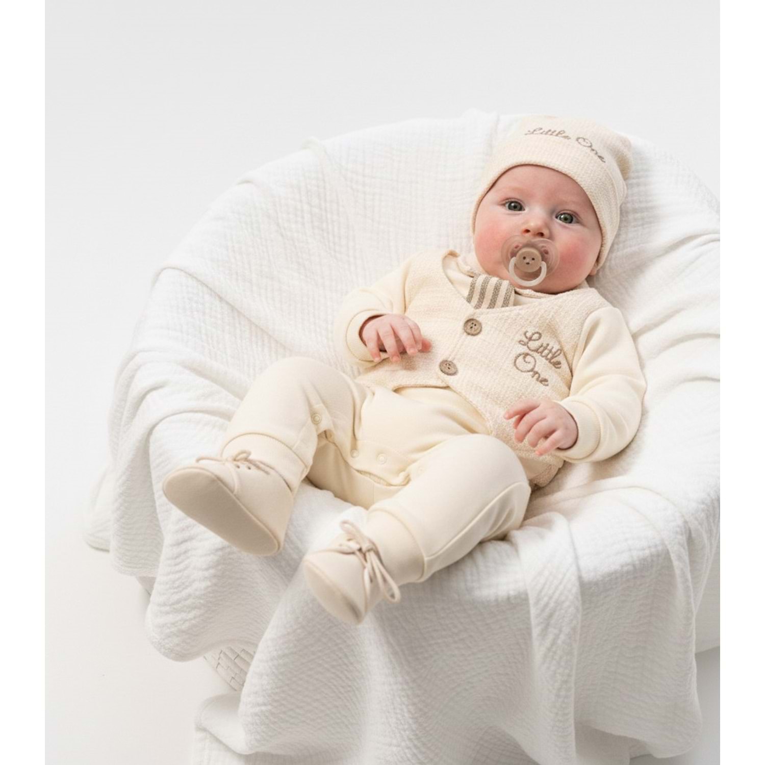 - %100 pamuk materyali ile bebeğinizin hassas cildine nazik dokunuşlar sunar.