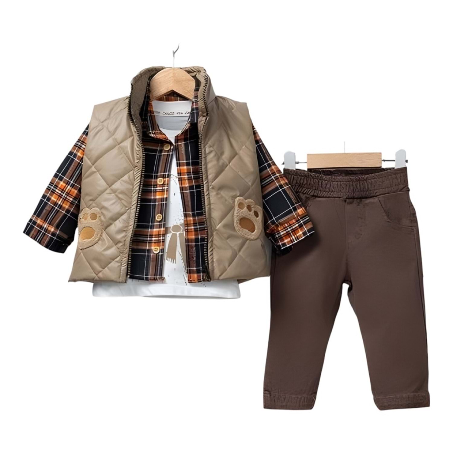 Canöz Bebe Şişme Yelekli Pati Nakışlı 3 Lü Erkek Takım 6-18 Aylık -5100819 - BEJ