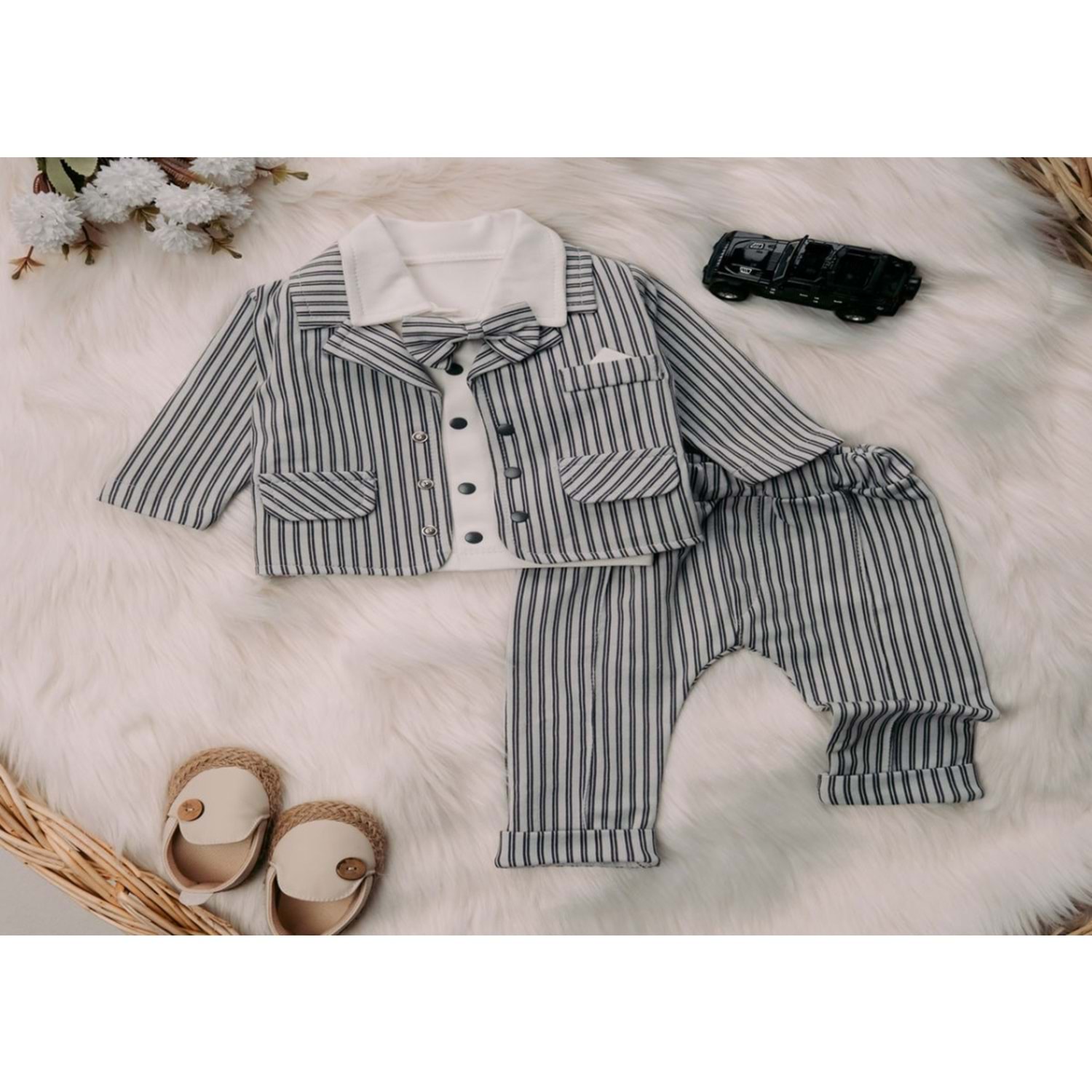 Mini Pakel 3-12 Aylık Erkek Ceketli Üçlü Takım-1363300 - MAVİ
