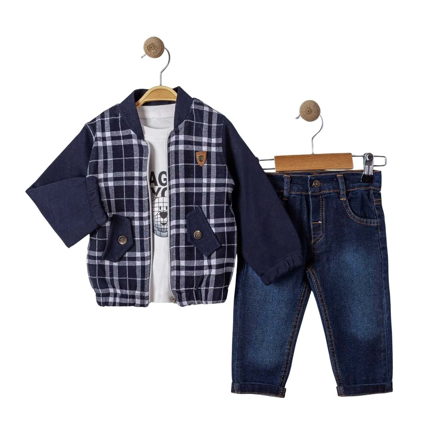 Oryeda Kareli Hırkalı 3 Lü Erkek Takım 9-24 Aylık-543410478 - LACİVERT