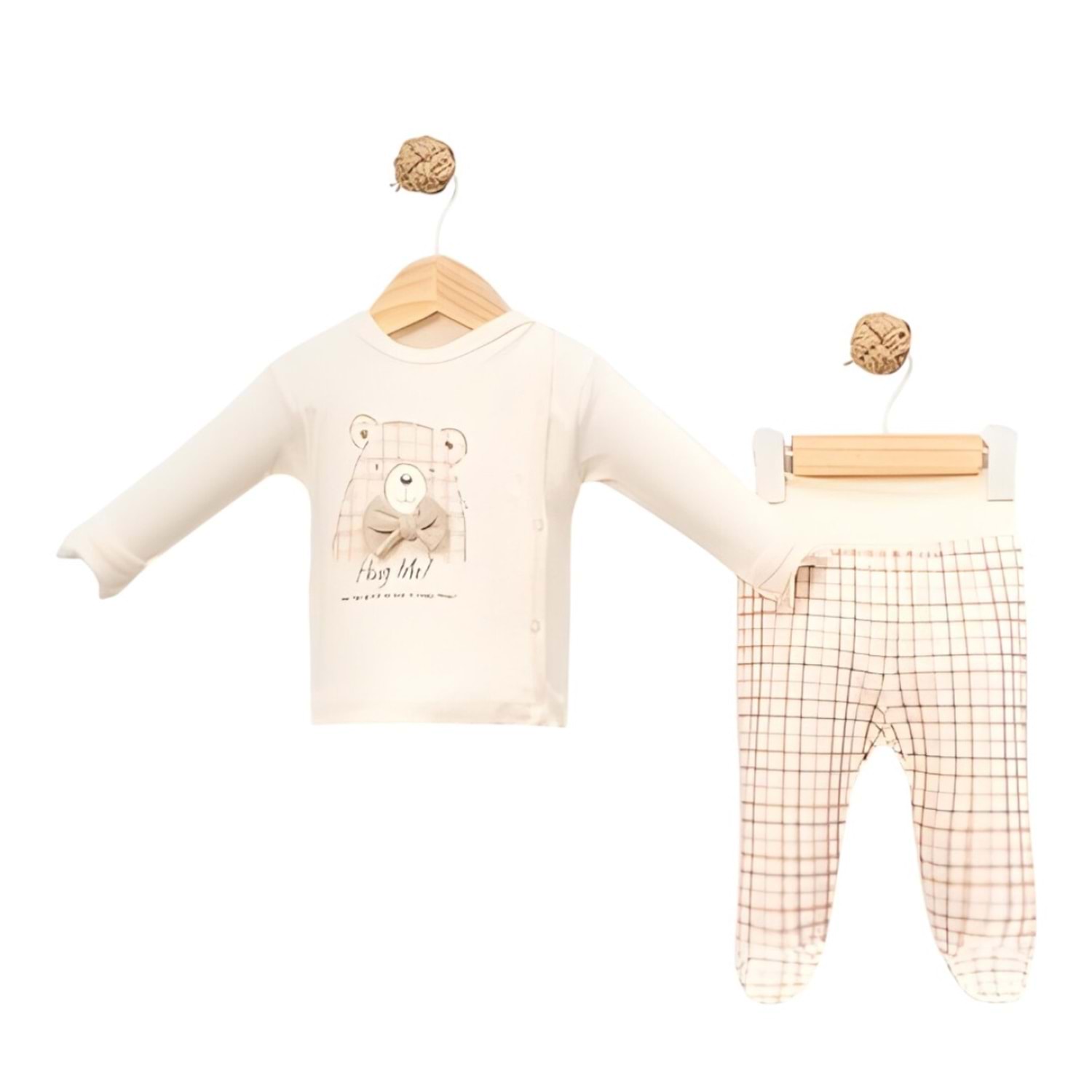 Babycan 9442 Erkek Ekoseli Desenli Üçlü Yenidoğan Takım - KAHVERENGİ