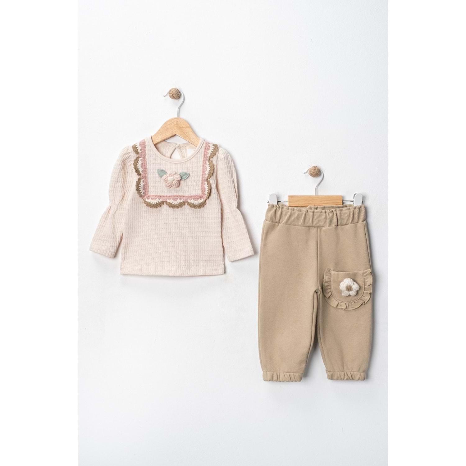 Via Girls İkili Çiçek Detaylı Takım-9778285 - BEJ