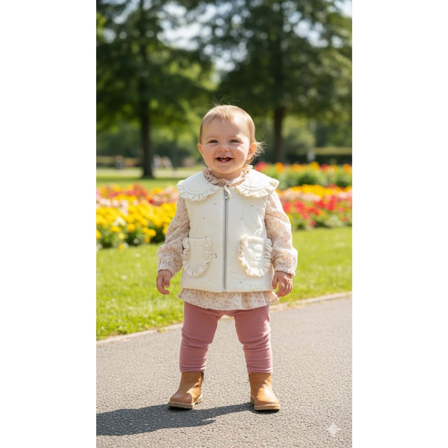 Hippıl Yelekli Çiçekli Üçlü Kız Takım 6-18 Aylık-5253636 - KREM