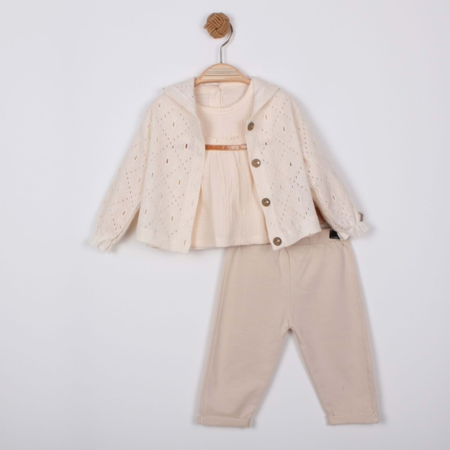 Minino Kız Dantelli Hırkalı Takım-1601310 - BEJ