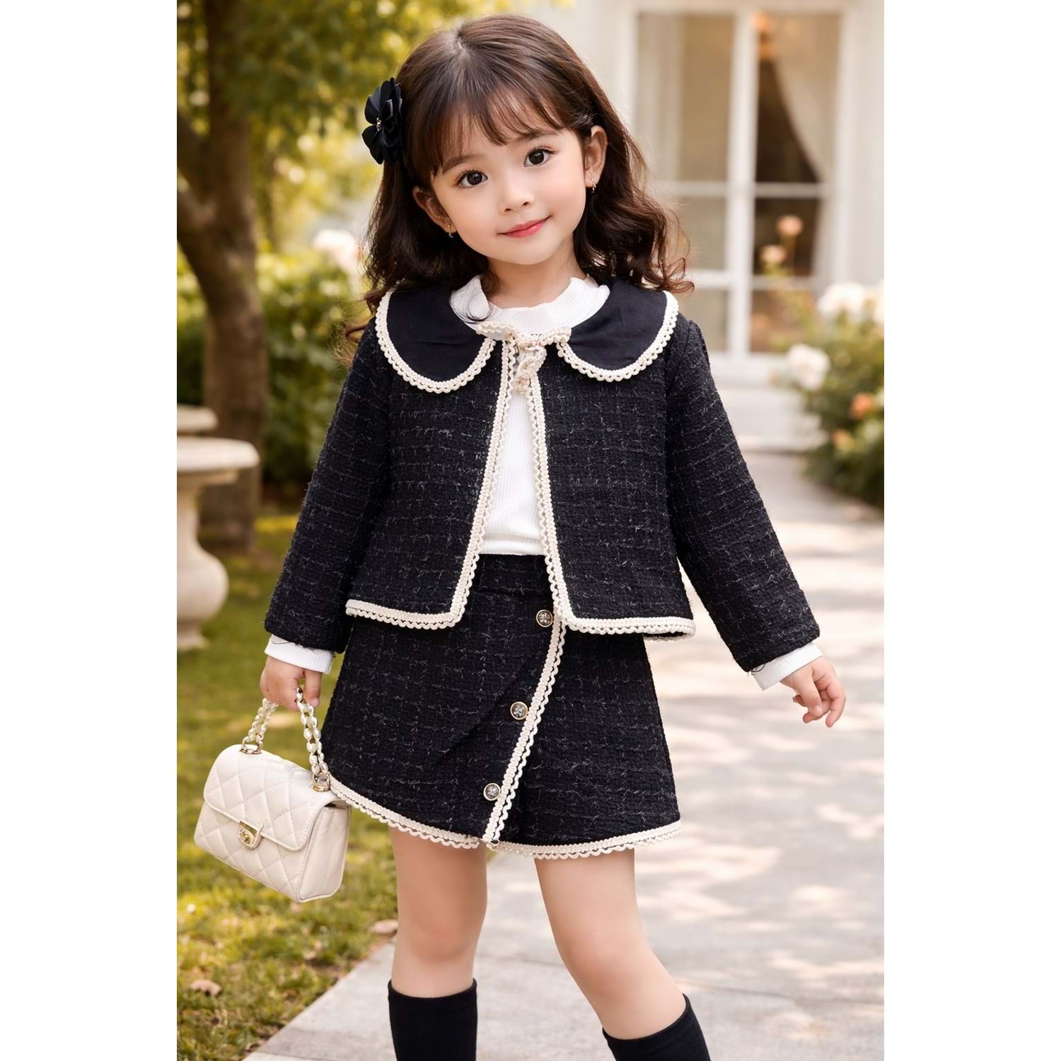 MixLife Yaka ve Ceketi Dantelli Şort Etekli 3 lü Takım 6-24 Aylık-6234370 - SİYAH