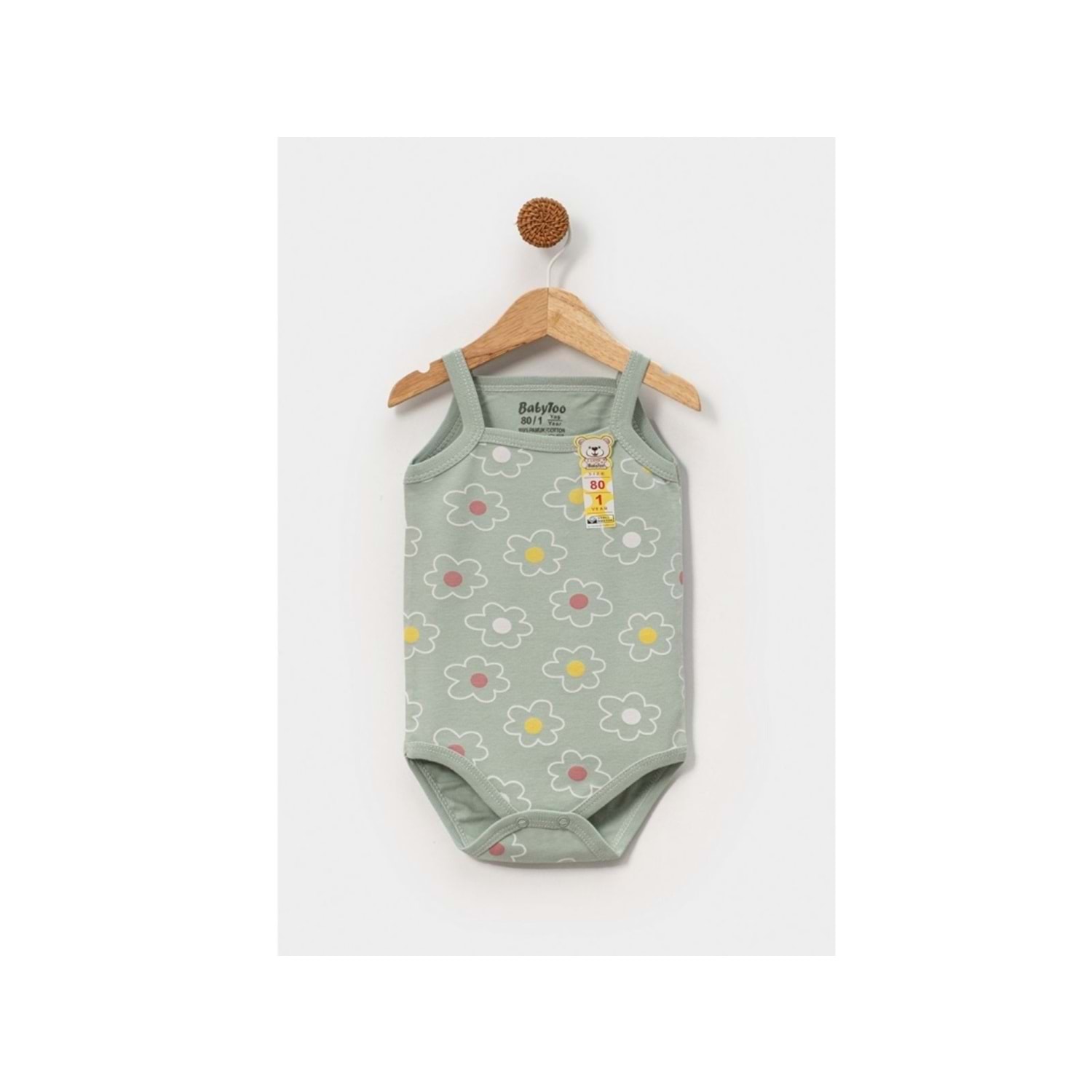 Babytoo 0-9 Ay Bebek Çıtçıtlı İp Askılı Badi Çiçekli-7307041 - YEŞİL