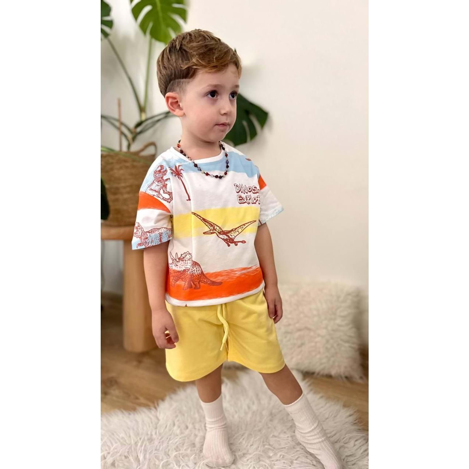 West Dinazor Basklı Penye Şortlu Erkek 2 Li Takım 2-8 Yaş -8113240 - SARI