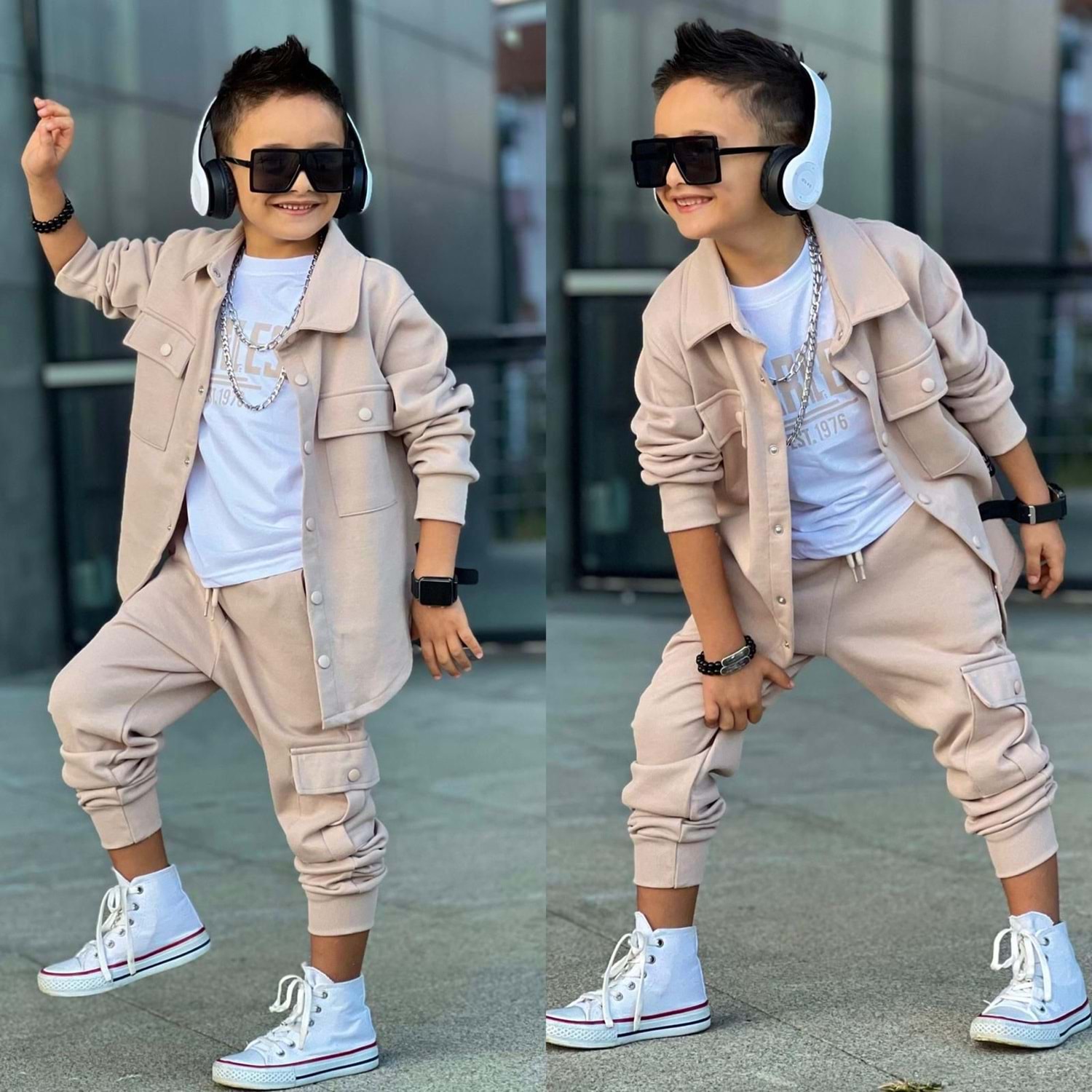 3-12 Yaş Erkek Fearles Baskılı 3lü Eşofman Takım- 60276750 - BEJ