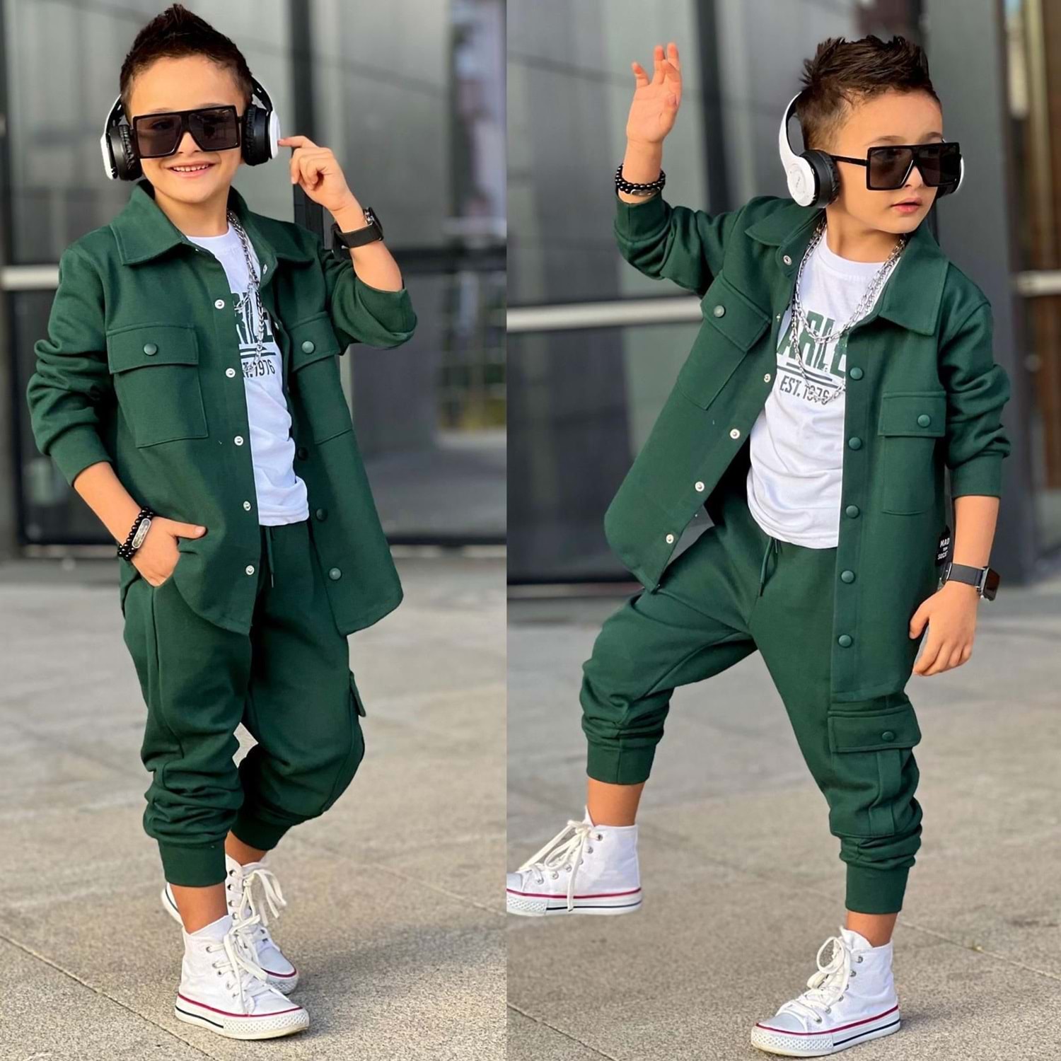 3-12 Yaş Erkek Fearles Baskılı 3lü Eşofman Takım- 60276750 - YEŞİL