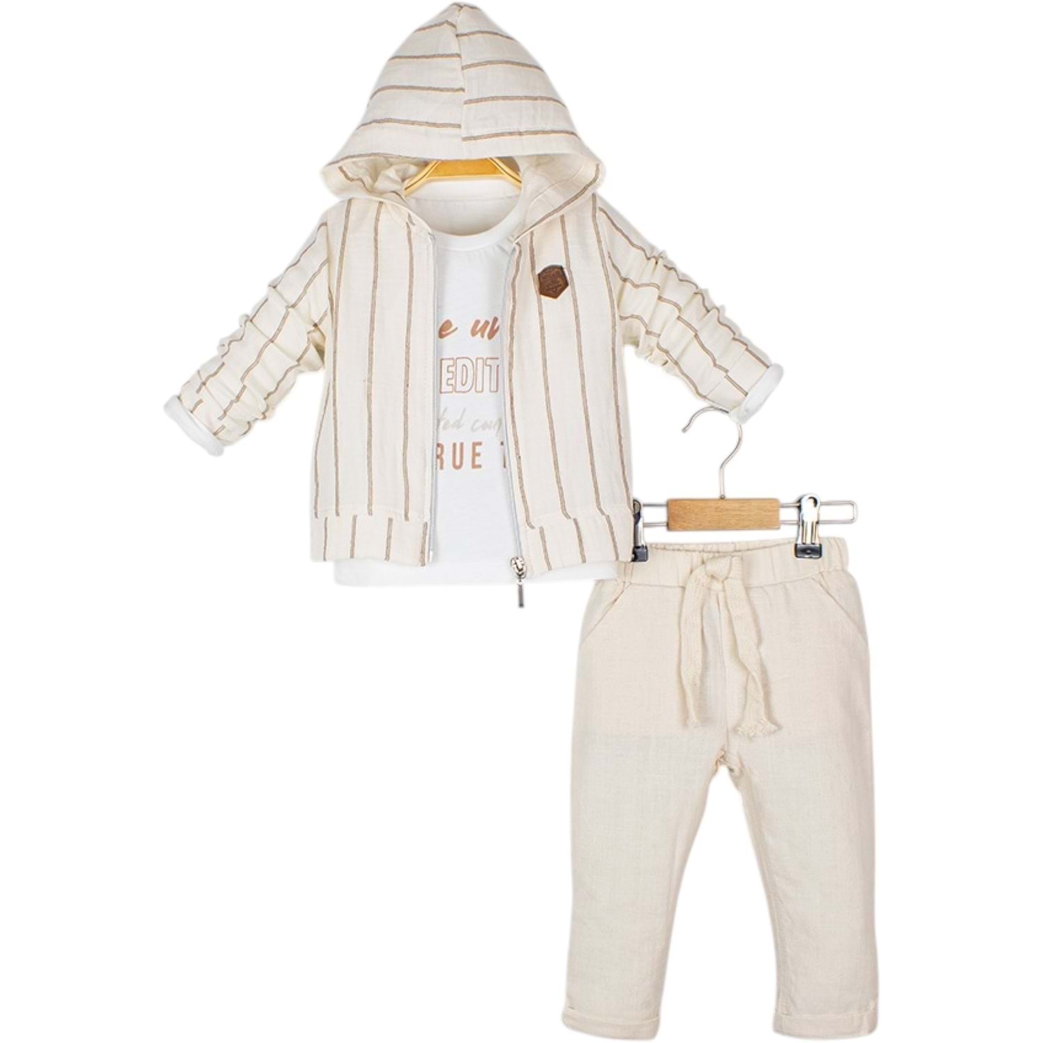 Nono İnce Çizgili Kapşonlu 3 Lü Takım 1-4 Yaş - 447032471 - KREM