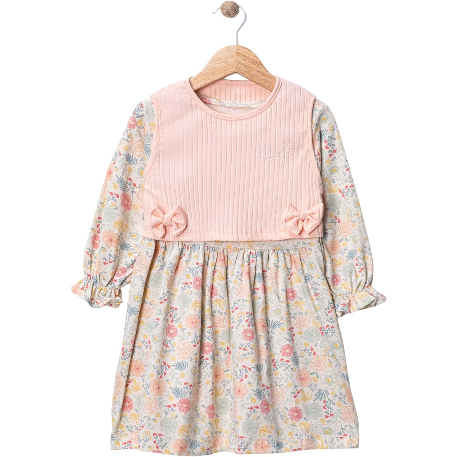 Wow Çiçekli Penye İkili Elbise 5-8 Yaş -450960200 - PUDRA