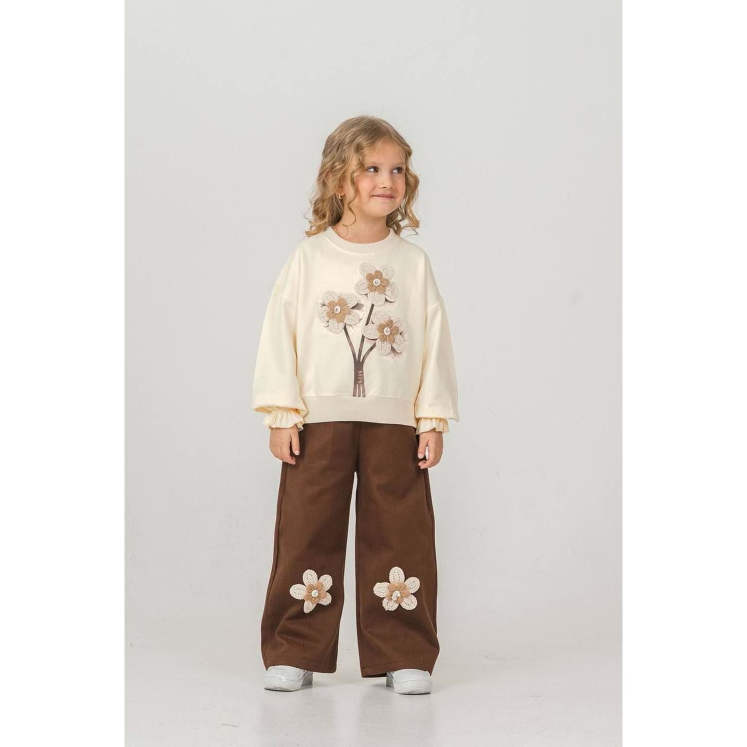 Harby Kids Çiçek Nakışlı Kız Pantolonlu İkili Takım 3-10 Yaş -103430 - BEJ