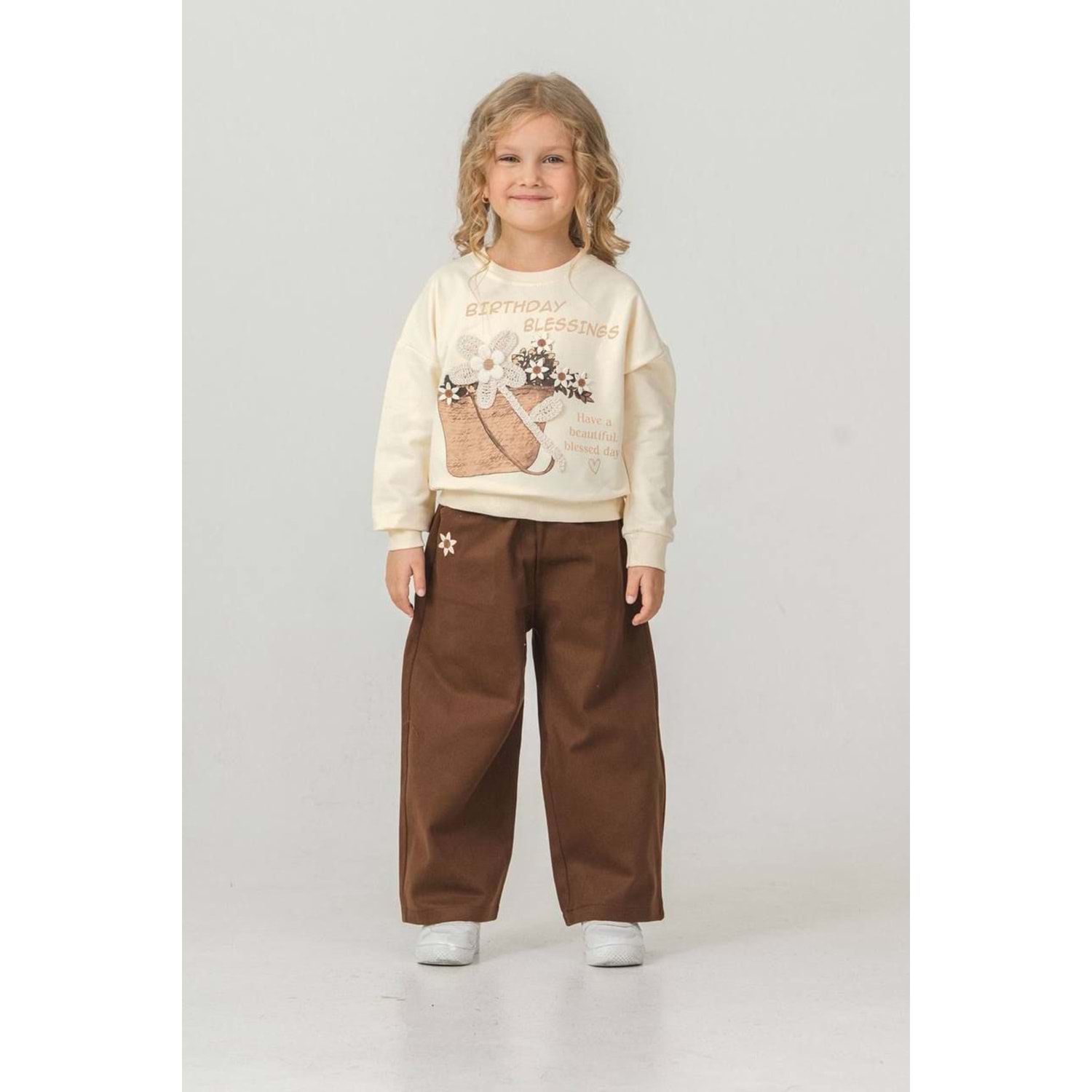 Harby Kids Çiçek Nakışlı Kız Pantolonu Çiçek Detaylı İkili Takım 3-10 Yaş -104430 - BEJ