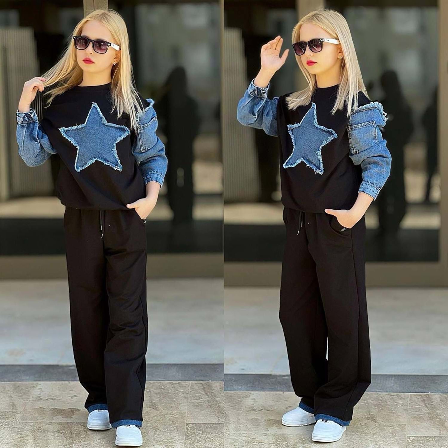 Kot Yıldız Detaylı Kız İkili Takım 5-14 Yaş-13268780 - SİYAH