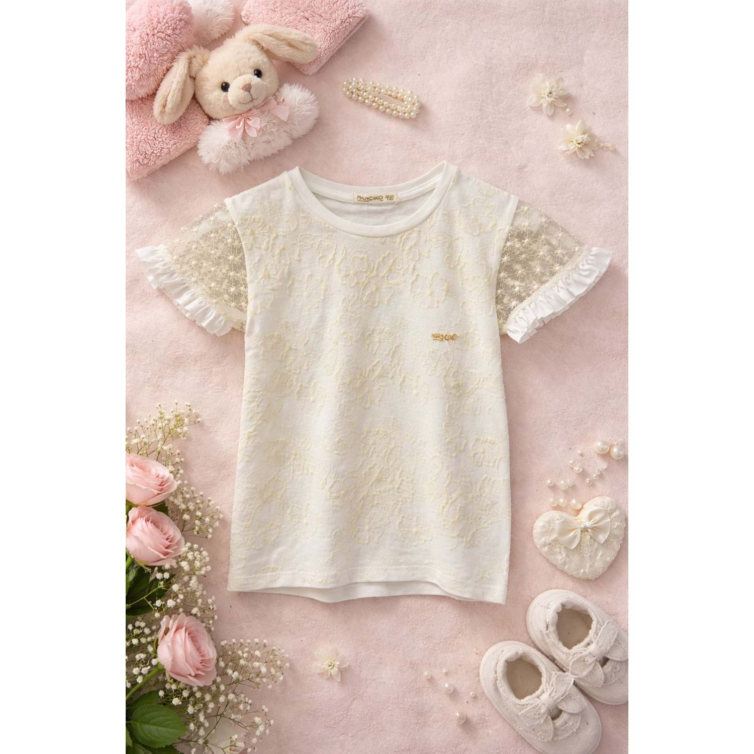 Pançiko Kendinden Çiçek Desenli Kız Tişört 5-12 Yaş -5100140 - KREM