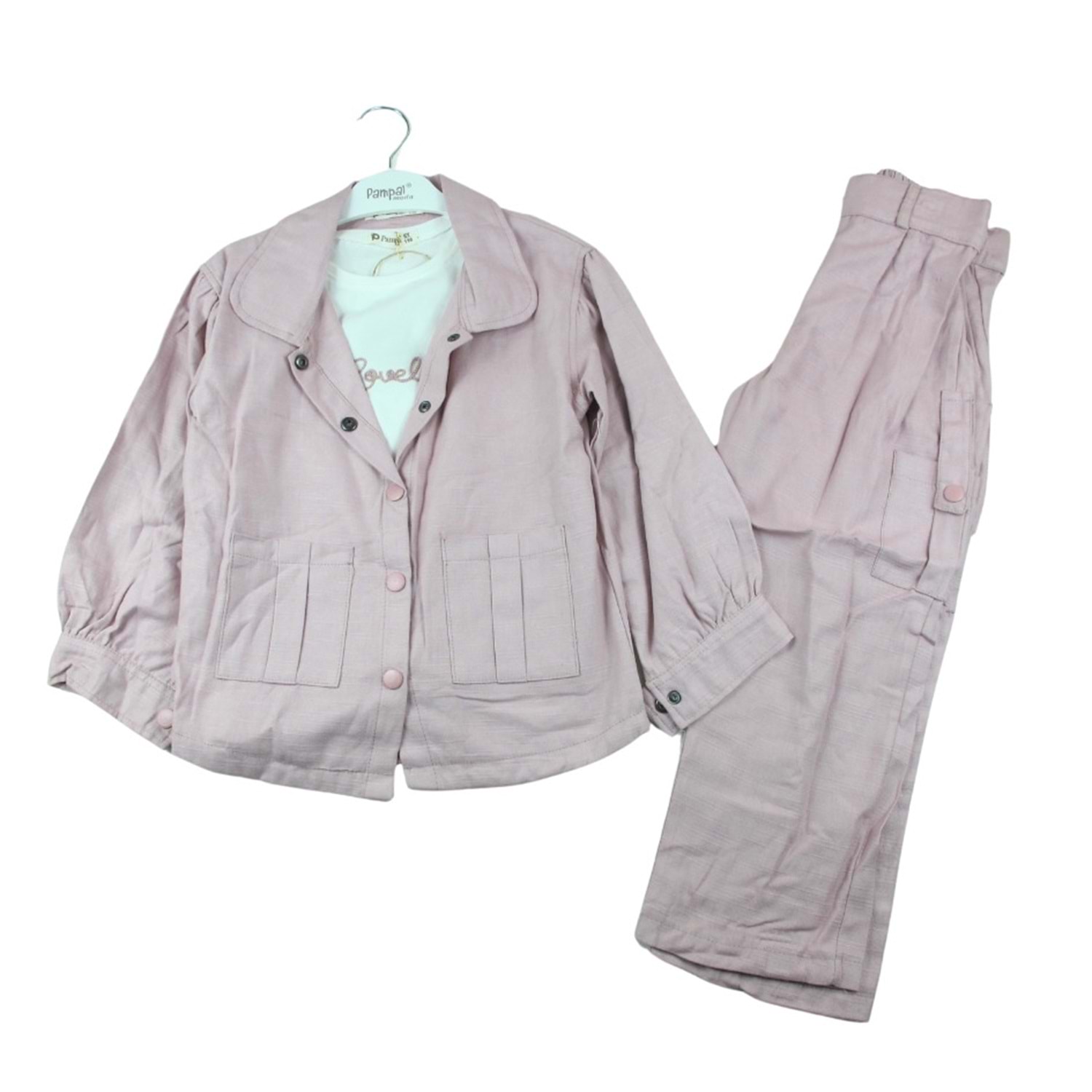 4370- Pampal 6-9 Yaş Kız Keten Takım - GÜL KURUSU