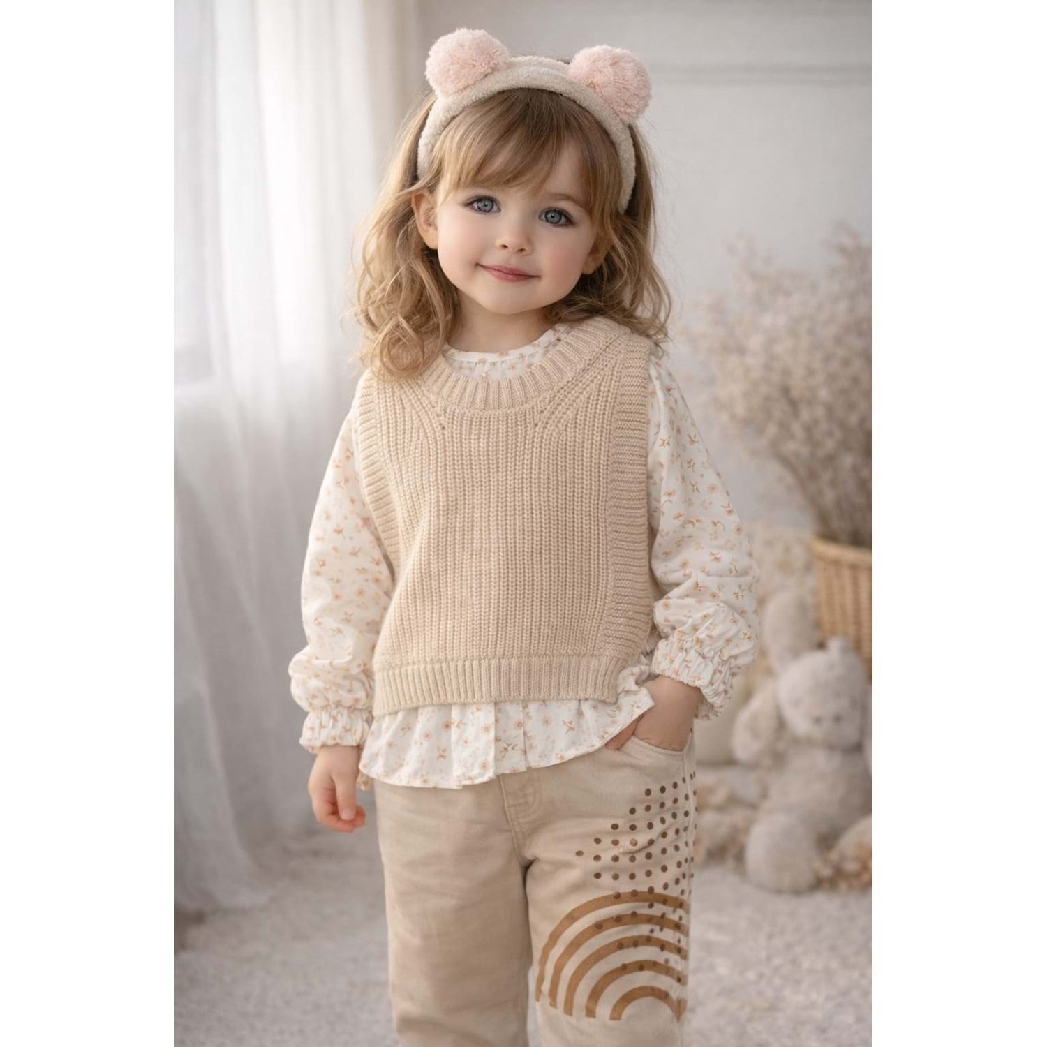 Bebiço Kız Süveterli 3 Lü Takım 2-5 Yaş-5423720 - BEJ
