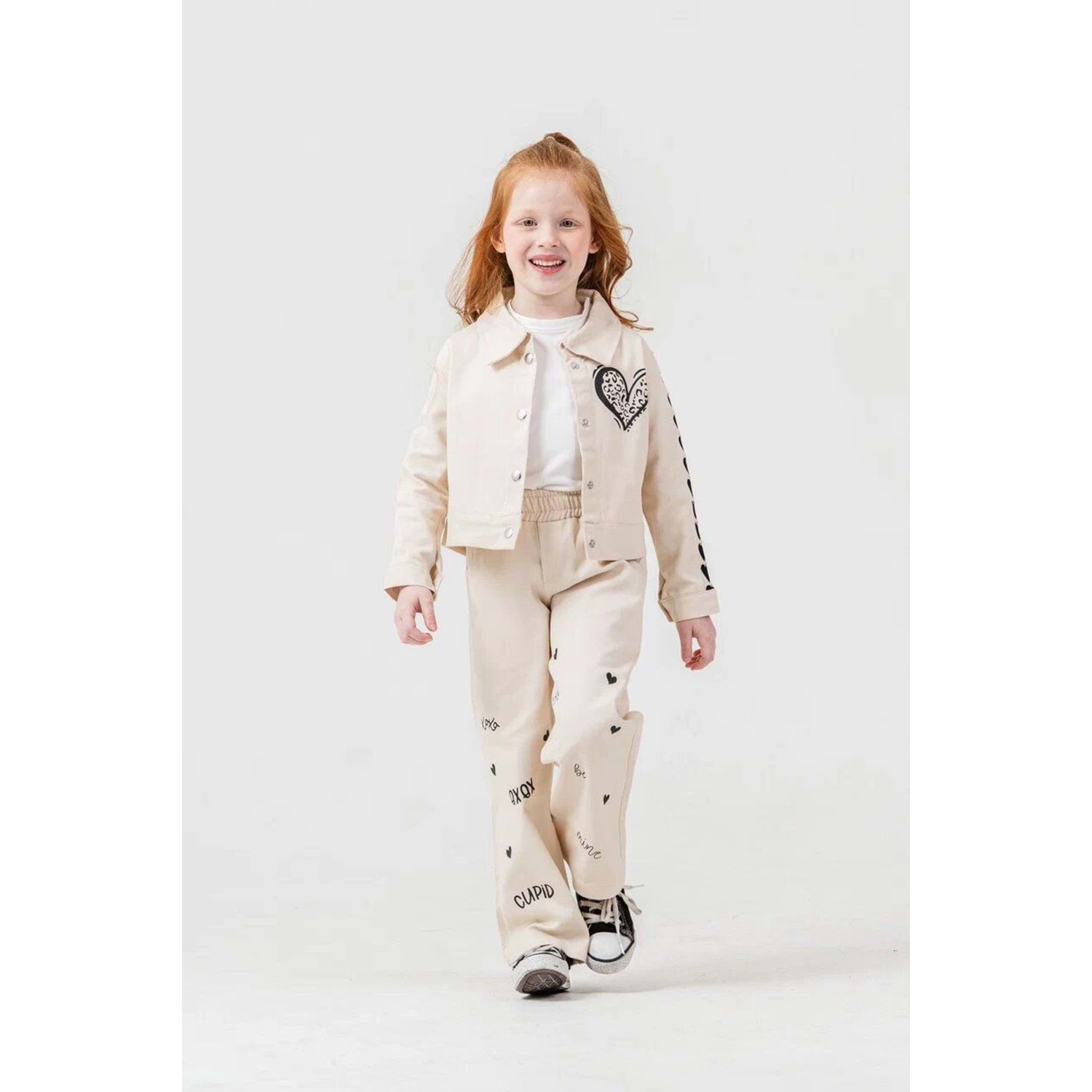 Harby Kids Kız Kalp Kol Nakışlı 3 Lü Takım 3-10 Yaş -142650 - KREM