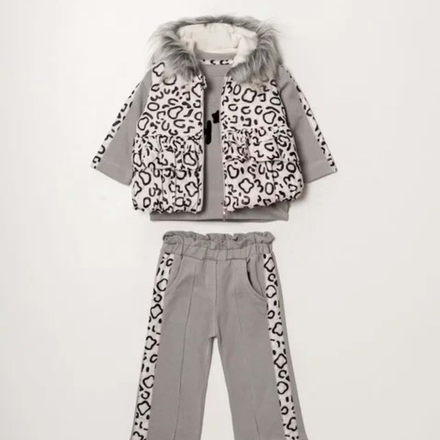 Hippıl Sahine Kürklü Kapşonlu 3 Lü Kız Takım 2-4 Yaş-541578641 - GRİ