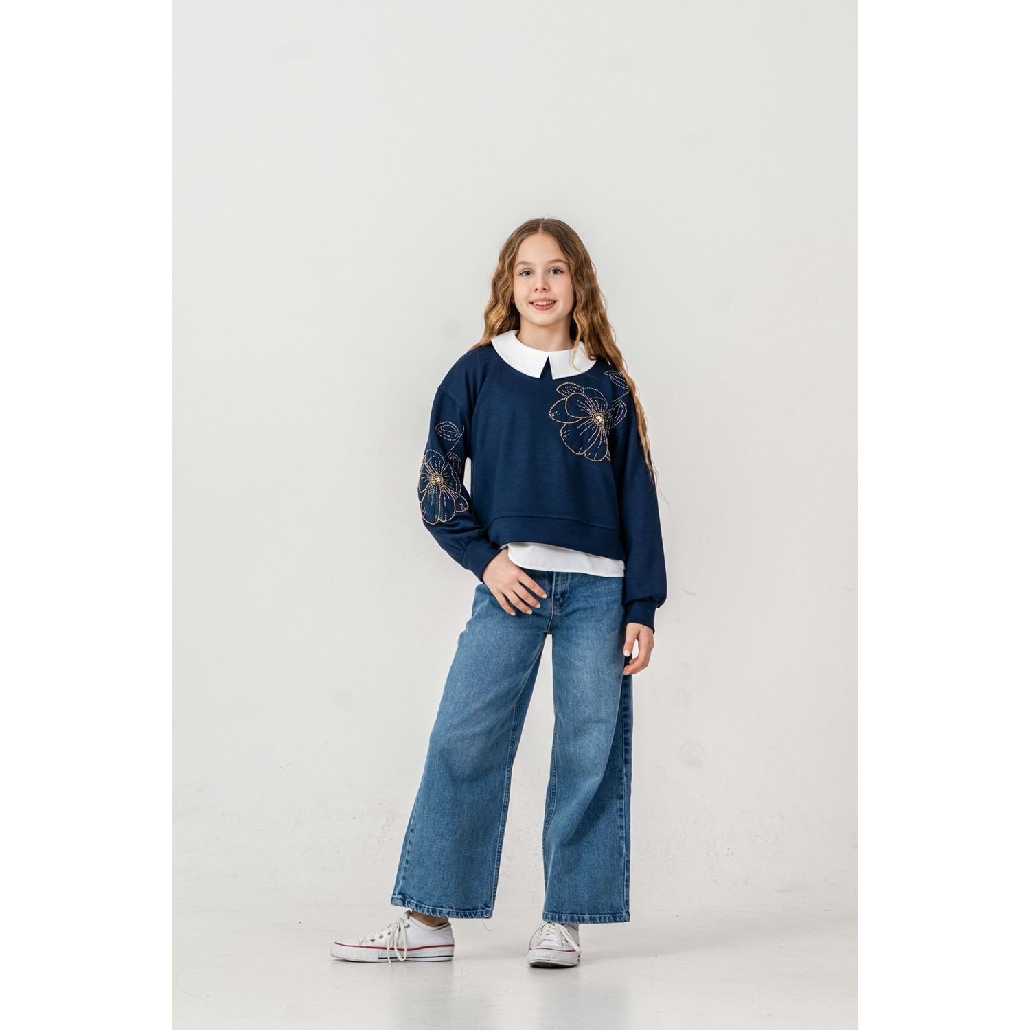 Son Öz Bebe Boncuk Nakışlı 3 lü Kız Takım 10-14 Yaş -499825 - LACİVERT