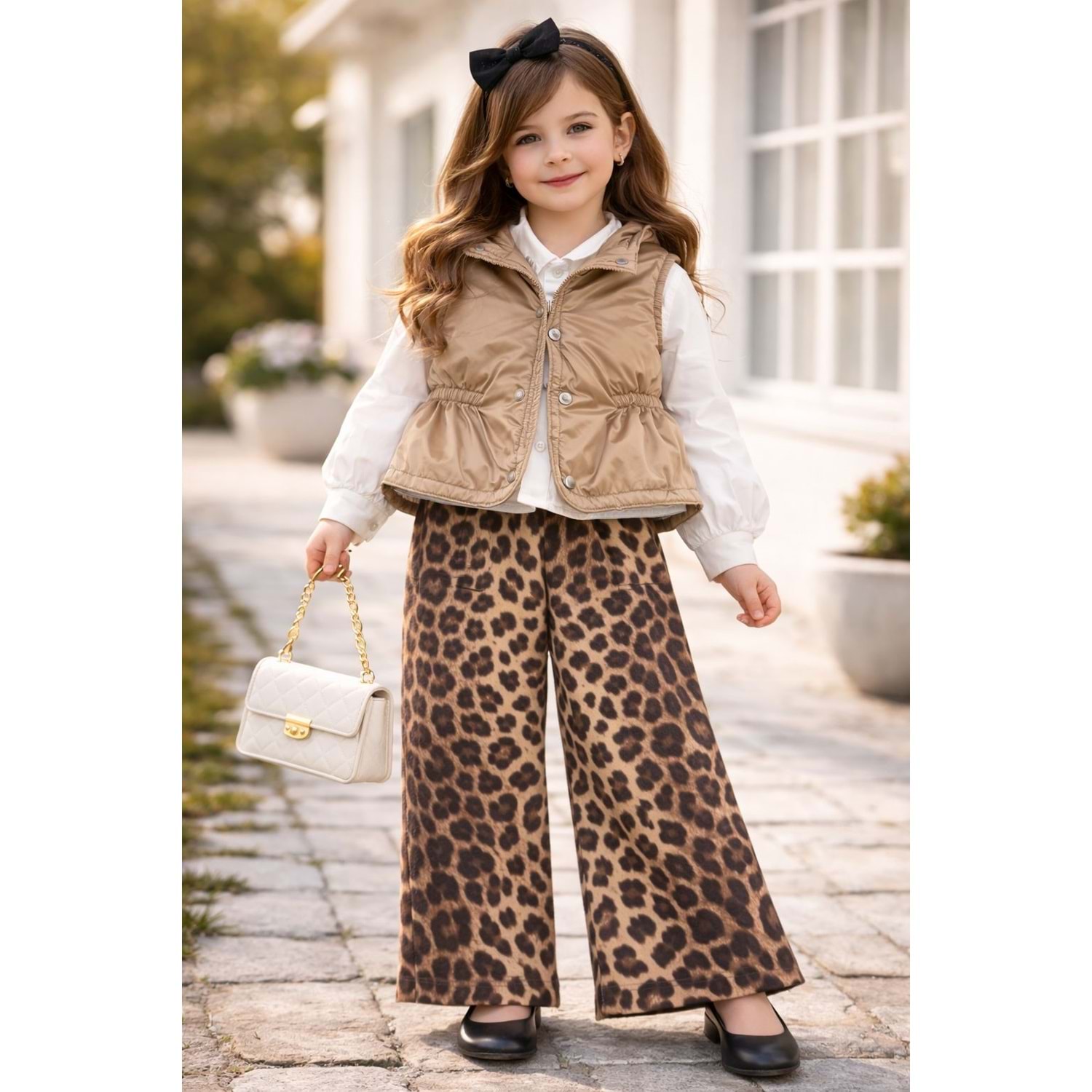 Wow Gabrdin Pantolon Mikro Yelekli Kalp Taşlı Takım 2-5 Yaş -450562483 - KAHVERENGİ