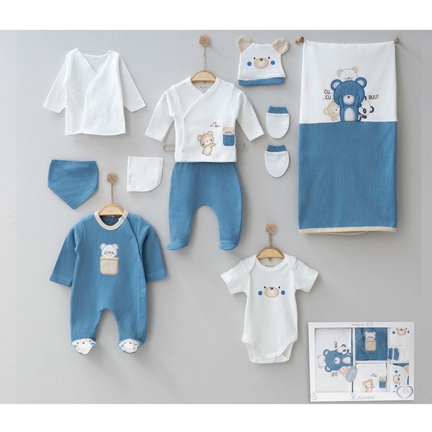 Cayzen Waffle Ayıcık Nakışlı 10 Parça Hastane Çıkışı 3002635 - MAVİ